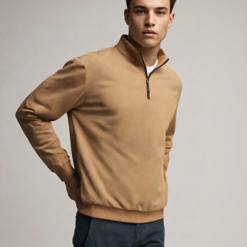 پلیور مردانه یقه ایستاده زیپدار بژ